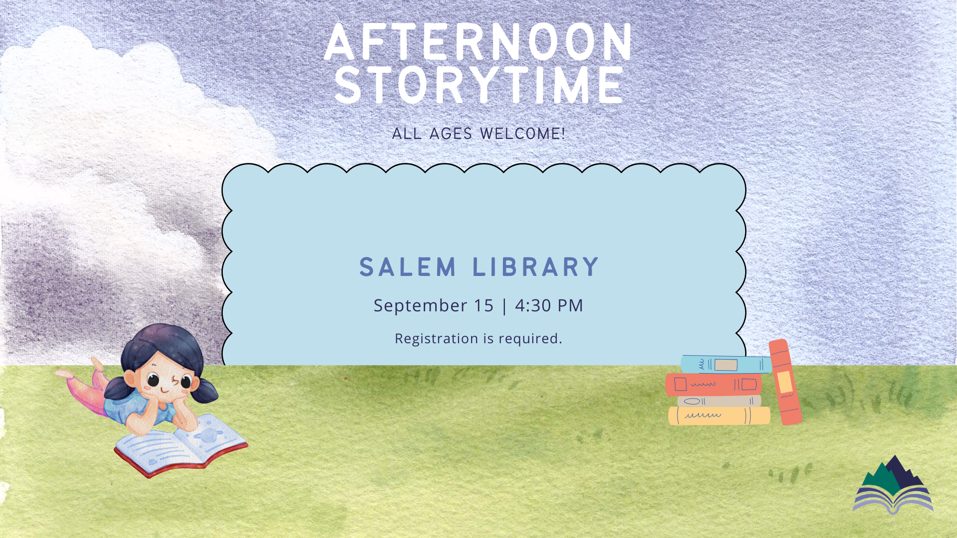 Wind down your day with Afternoon Storytime, a fun and playful time for all ages! Enjoy stories, songs, dancing, and more as we come together for an engaging and interactive storytime experience. We’ll end the afternoon with a simple craft the whole family can enjoy. Join us for a lively and creative way to spend your afternoon at the library! Registration is REQUIRED. All ages are welcome.