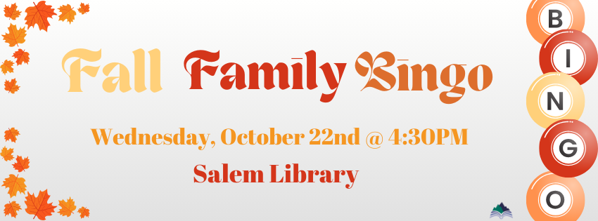 It’s BINGO time at the Salem Library! Play fun rounds of BINGO for a chance to win books and other great prizes.