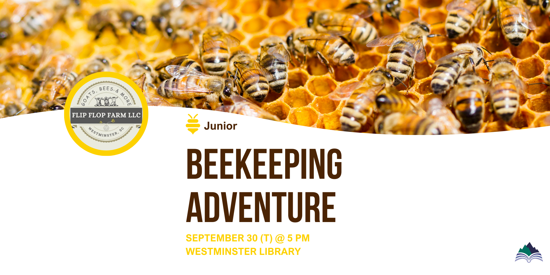 Join us as Steve and Valerie Priole of Flip Flop Farms, LLC. take us on an adventure about beekeeping. They will teach us about bees, hives, and much more. They will discuss bee safety and will have hands-on fun with touching beeswax or trying on gear. There will even be honey for tasting. Registration is required and will open on September 16.