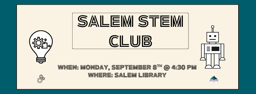 Explore the fun world of STEM (Science, Technology, Engineering, and Mathematics) with self-directed, hands-on activities. Registration is required and will open on Monday, August 25th at 10:00 AM.
