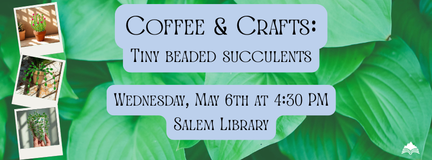 No green thumb? No problem! Join us for Coffee & Crafts, where the coffee is iced and the plants live forever. Here, we will create tiny beaded succulents that stay perfectly green forever. No watering, no wilting, no plant-parent guilt. Leave with a plant that is as sparkly as it is ever-green! Registration is required and will open on Wednesday, April 22nd at 10:00 AM. Ages 14+.