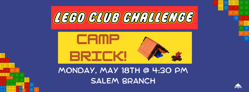 School is out and camping season has begun! Visit different LEGO stations in the library to build camping items using the library’s collection. Can you build all the items you would need for a fun camping trip? Registration is required and will open on Monday, May 4th at 10:00 AM. Ages 6-11.