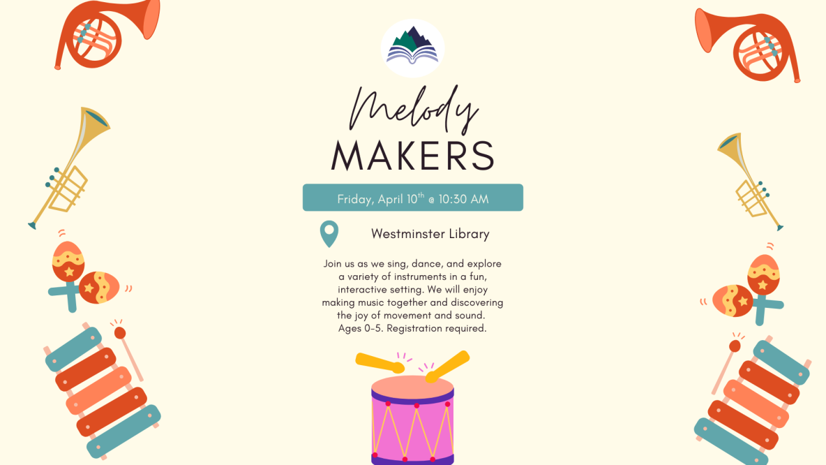 Little ones will sing, dance, and explore a variety of instruments in a fun, interactive setting. This program encourages creativity and imagination while introducing children to the world of rhythm, sound, and musical play! Caregivers and kids will enjoy making music together and discovering the joy of movement and sound. Registration is required. Ages 0-5.