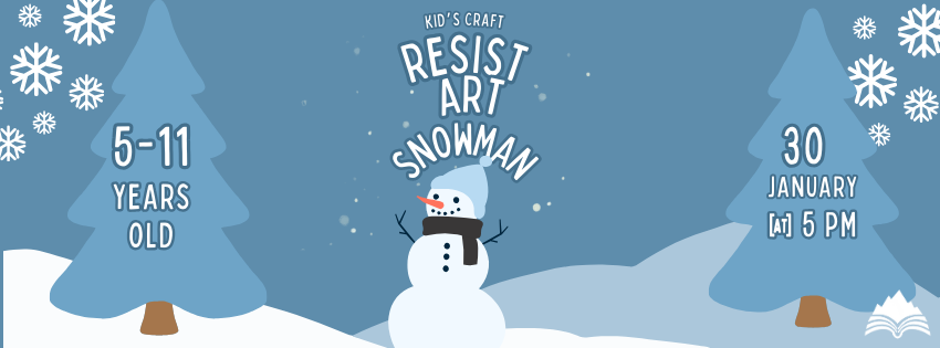 Kids are invited to use resist art to make painted snowmen. Registration is required. Registration opens on January 16. If after registering you find you cannot attend, please let us know as soon as possible so that others who may be waiting can attend. Ages 5-11