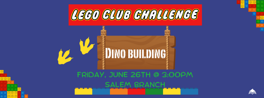 Using the library’s LEGO collection, create a scene involving your favorite dinosaur and learn more about it while building. Registration is required and will open on Friday, June 5th at 10:00 AM. Ages 6-11.